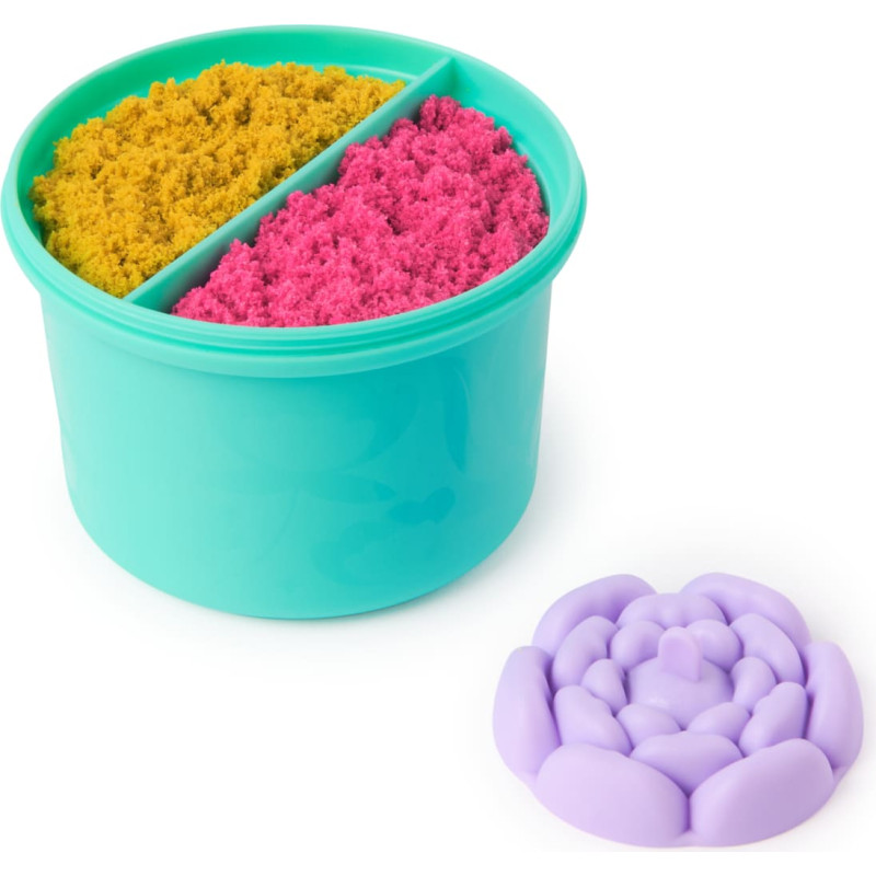 Kinetiilise liiva mängukomplekt sisaldab 227g neoonroosat ja kollast kineetilist liiva, lillepotti ja -vormi ning lisavormi poti põhjas. Kanna liiv kihiliselt vormi ning suru vorm vajutatava vahtpadja peale ja vajuta alla. Kui vorm tõuseb, hakkab lill maagiliselt õitsema! Sega liiva, et teha erinevaid värve ning vormi lillepoti vormidega roose, mesilasi ja lehti ning pane nad uuesti õitsema ning liikuma! See kineetiline liiv on valmistatud looduslikust liivast, mis kleepub iseenda külge ja seda on lihtne puhastada. Kineetiline liiv ei kuiva kunagi ära.