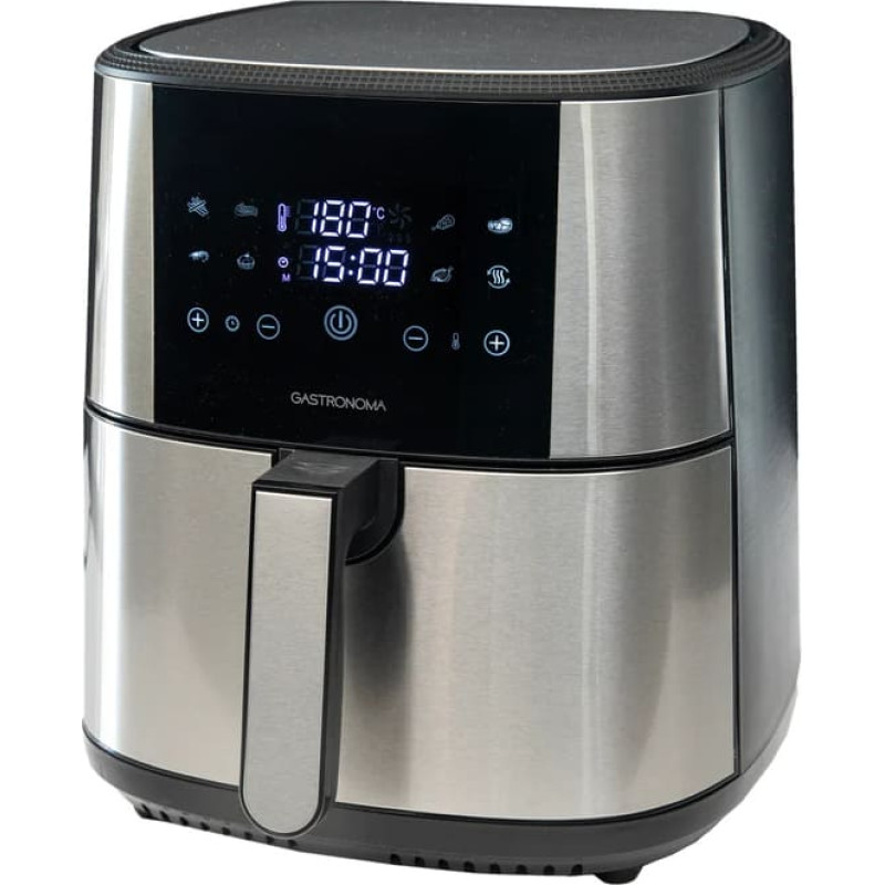 Iepazīstieties ar Gastronoma gaisa katlu: risinājums tiem, kas vēlas gatavot ātri, veselīgi un energoefektīvi. Šī augstas kvalitātes gaisa ceptuve revolucionizē jūsu virtuvi, gatavojot ēdienu ar par 80% mazāk eļļas nekā tradicionālā cepšana. Tādā veidā jūs varat baudīt iecienītākās maltītes ar minimālu tauku daudzumu, neapdraudot garšu vai tekstūru. Gaisa žāvētājam ir 8 litru pārtikas grozs ar nepiedegošu pārklājumu un keramikas pārklājumu bez PFAS. Gaisa žāvētājs ir aprīkots arī ar regulējamu termostatu, spilgtu LED displeju un digitālo skārienekrānu perfektai vadībai un ērtai lietošanai.