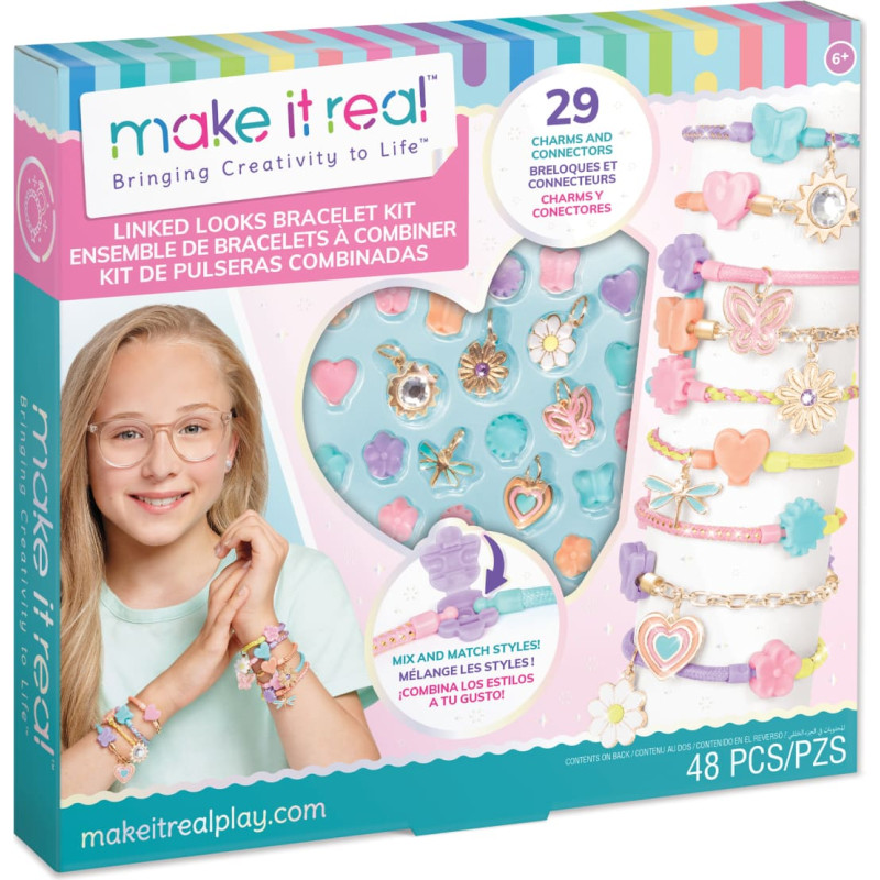 Make It Real eesmärk on inspireerida! Vaheta ja sobita värvilisi käevõrude osasid ning tee ühe- või mitmekihilisi käevõrusid või isegi kaelaehteid koos sobivate stiilsete ripatsitega. Loodud ehteid saab kohandada mistahes stiiliga, sest elemente saab kiiresti vahetada. Suurepärane kingiidee tähtpäevadeks loomingulistele lastele!