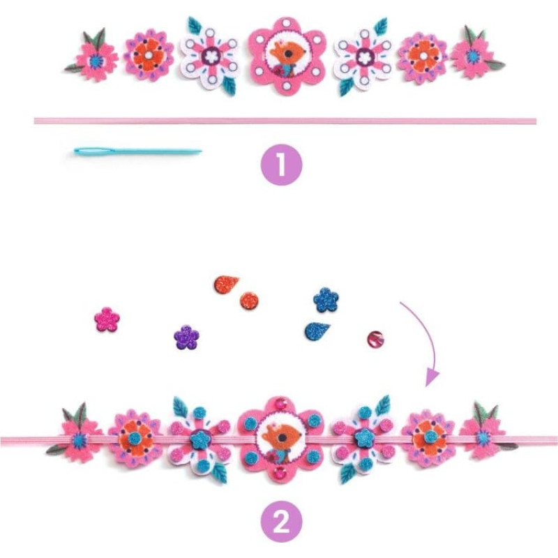 Loominguline komplekt nelja armsa käevõru valmistamiseks, mida saab kaunistada sädelevate vahtplastist kleebiste ja kalliskividega. Jäta endale või kingi ära! Komplektis on 28 vildist osa (7 käevõru jaoks), 4 elastset paela, 4 sädelevate vahtplastist kleebiste lehte, 1 kalliskivikleebiste leht, 4 tömbi otsaga nõela ja täpne juhis. Sobiv alates 5. eluaastast. HOIATUS! Ei sobi alla 3-aastastele lastele. Lämbumisoht - sisaldab väikeseid osi. Valmistatud Hiinas.