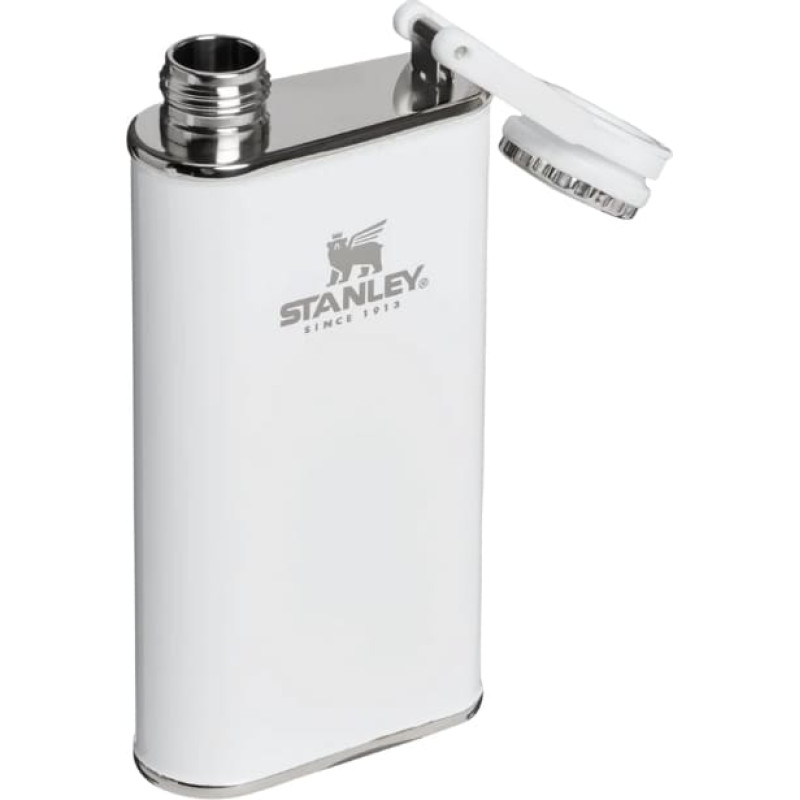 Stanley ir bestsellers termosu pasaulē. Tam ir sena vēsture, kas aizsākas tālajā 1913.gadā. Stanley termosi vienmēr būs sastopami gan piknikos dabā, gan virtuvēs un birojos. Šis zīmols ir iemantojis cilvēku uzticību jau daudzās paaudzēs. Piepildiet savu termosu ar kafiju, tēju, ūdeni, sulu,vai jebkuru citu dzērienu. Jūs to varat izmantot atrodoties kā mājās, tā arī darbā, birojā, dodoties brīvā dabā, kempingā, ceļojot. Stanley produkti ir ražoti no augstas kvalitātes 18/8 nerūsējoša tērauda. Tie nesatur kaitīgo BPA, ir netoksiski kā arī ir droši pret noplūdēm. Stanley Classic blašķe - retro diazains, kompakts izmērs, augsta izturība. Plaša dzeršanas atvere ļauj to viegli uzpildīt, savukārt nerūsējošā tērauda konstrukcija ar necaurlaidīgu vāciņu padara to īpaši izturīgu. Tilpums: 0.23L Materiāls: nerūsējošais tērauds Izmērs: 7.6 x 7.6 x 16cm Svars: 0.158kg