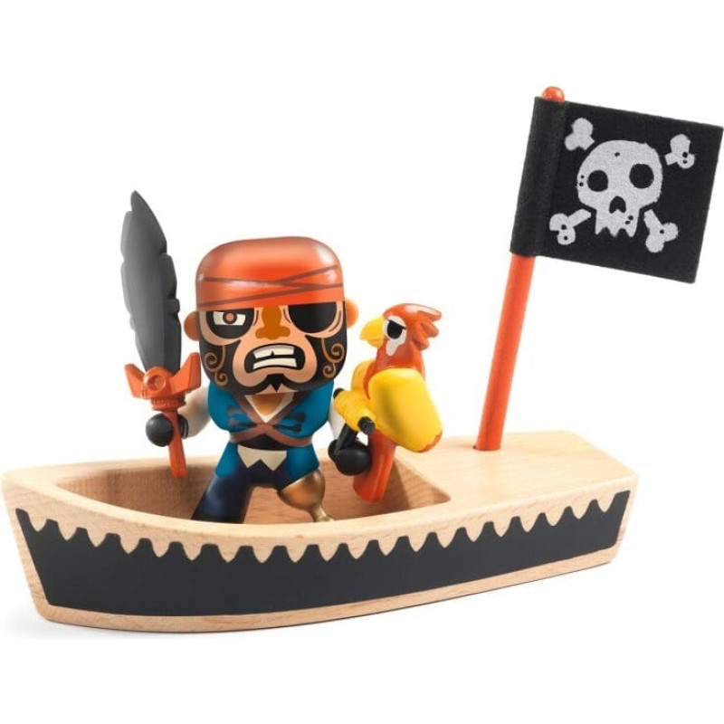 Mänguasi on osa Djeco Arty Toys kollektsioonist, relvastatud mõõga. Tegelane on liigendatud käte ja peaga. Komplektis on samuti paat, mõõk, lipp ja papagoi. Uhkusega kogu kokku erinevad tegelased ja esemed ja esitle neid. Arendab loovust ja fantaasiat. Sobiv alates 4. eluaastast. HOIATUS! Ei sobi alla 3-aastastele lastele. Lämbumisoht - sisaldab väikeseid osi. Valmistatud Hiinas.