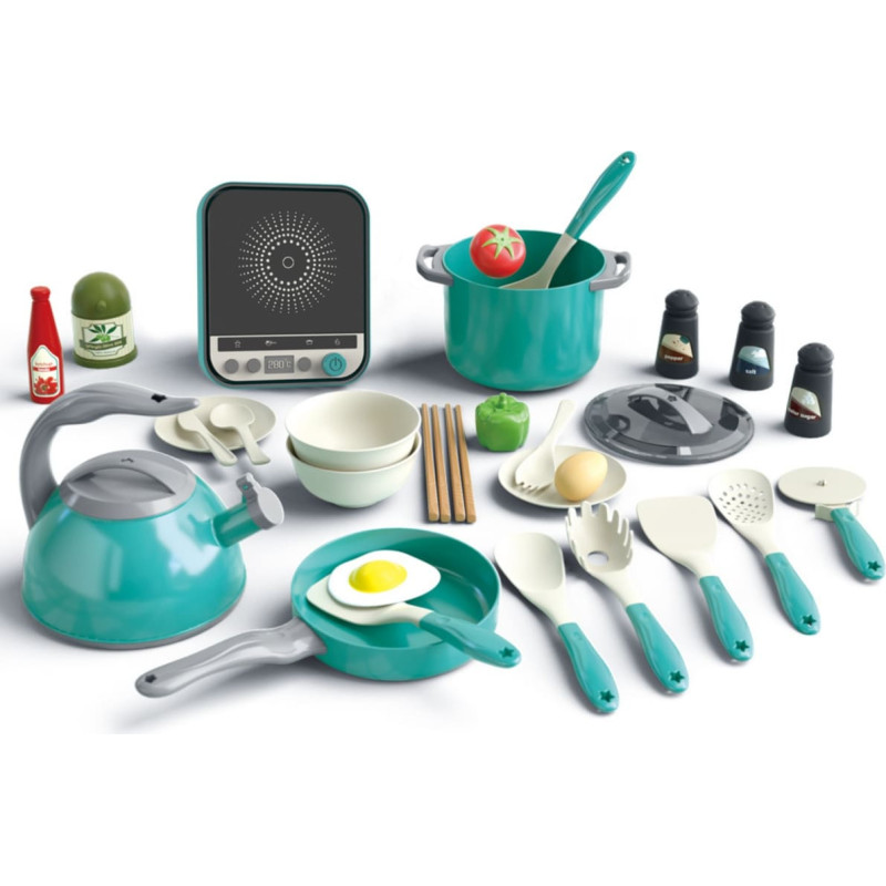 Woopie Zestaw Małego Kucharza Indukcja Garnki Patelnia Czajnik Zielony 30el.