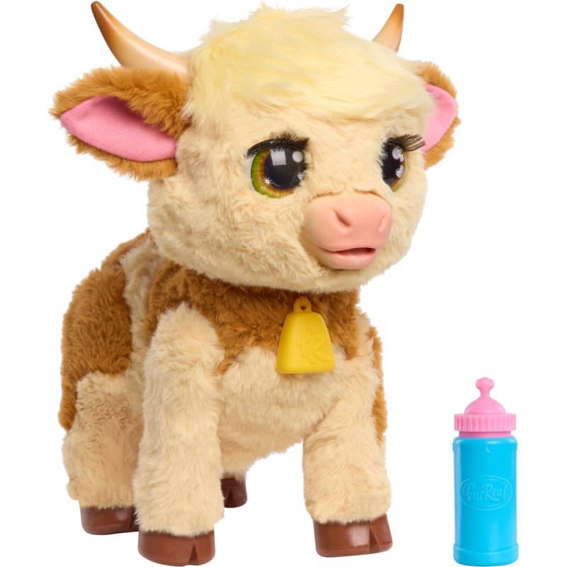 FurReal Maggie the Feed & Follow Cow interaktiivne mänguasi on armas väike lehmake, millel on üle 40 heli ja reaktsiooni. Silita tema pead ja kuuled mitmesuguseid armsaid lehmahääli! Patsuta Maggie pead, et aktiveerida tema armsate pruuni-roheliste silmade pilgutamine. Vajuta tema seljal olevat nuppu, et aktiveerida kõndimisliigutused ja saba lehvitamine. Pane talle pudel suhu, keeruta seda ja juhi Maggie´t kõndimisel.