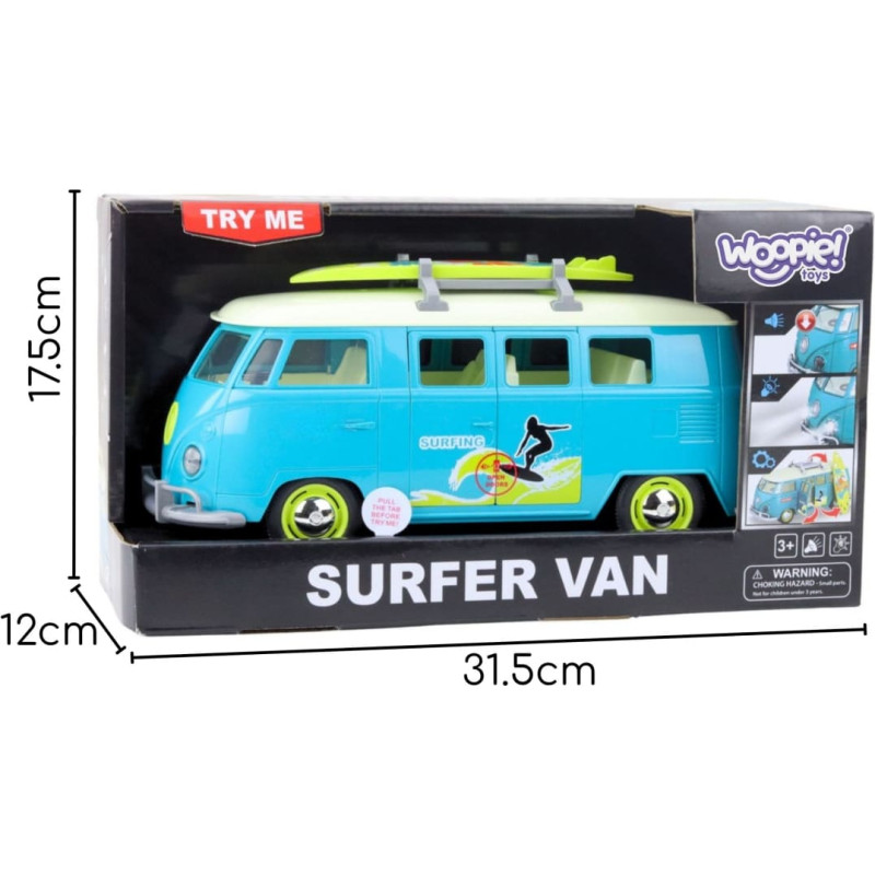 Woopie Samochód Bus Surfing Klasyczny Niebieski Ze Światłem I Dźwiękiem Model
