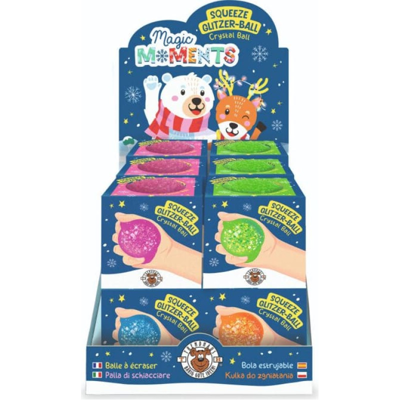 Kokkupigistatav stressivastane mänguasi. Täidis: vesi, glitterid. Läbimõõt: 5 cm. HOIATUS! Ei sobi alla 3-aastastele lastele. Lämbumisoht - sisaldab väikeseid osi. Toodet tuleb kasutada täiskasvanute järelevalve all. Valmistatud Hiinas.