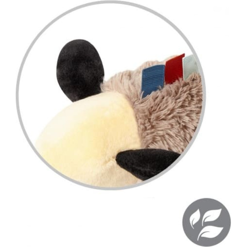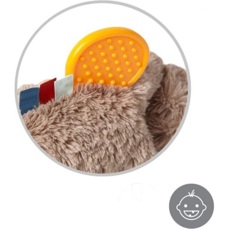 Grabošajai skaņai ir nomierinoša iedarbība uz bērnu. Rotaļlietas komplektācijā esošais mīkstais silikona zobgrauznis nomierina kairinātās smaganas zobu nākšanas laikā. Rotaļlietā paslēptie čaukstošie elementi ieinteresēs bērnu un piesaistīs viņa uzmanību.