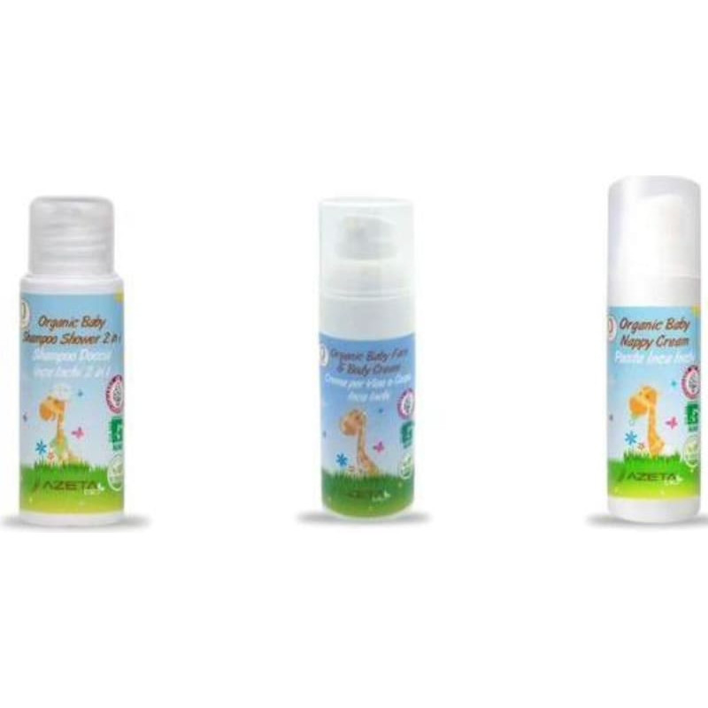 Azetabio GIFT SET: Organic nourishing baby cream, body and hair wash, and protective diaper cream + gift