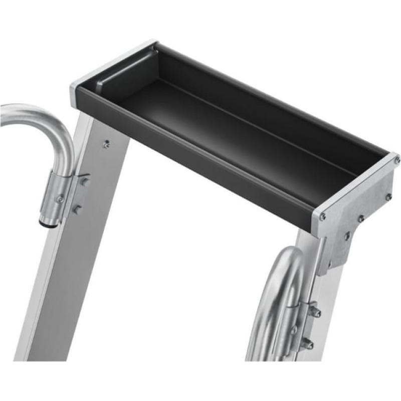 Mobilās alumīnija platformas kāpnes ar lielu stāvvirsmu un praktisku uzglabāšanas paplāti.