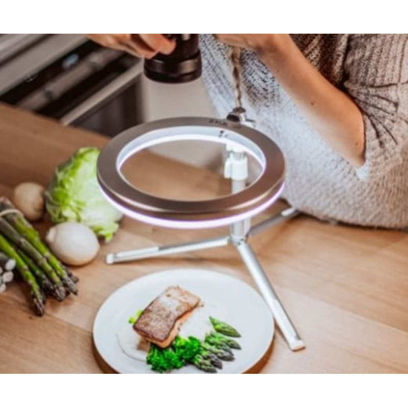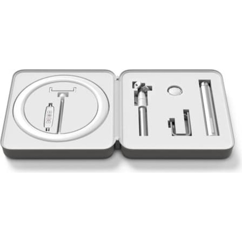 Tehnilised detailid: -10 tolli / 25cm läbimõõduga ringvalgus - reguleeritav värvitasakaal 3500K - 5500K (valge, looduslik, soe) -Reguleeritav heledus (10% -100%) -Kindel pärlhõbedaga kaetud alumiiniumisulamist südamik -120 kvaliteetset üksikut LED-i - lihtne seadistamine ja töö -Tripod kaasas (reguleeritav kõrgus 55cm - 73cm) -USB-pistik 5v / 2a (töötab toitepanga või USB-vahelduvvoolu pistikuga) - ühildub kõigi nutitelefonide ja Action-kaameratega - ühildub DSLR-kaameratega (maksimaalne soovitatav kogukaal 2kg / 4lb) - Komplektis Bluetooth-katik -Kandekott kaasas Pakett sisaldab: 10-tolline rõngastuli, statiiv, Bluetooth-katik, universaalne nutitelefoni klamber, DSLR & Action-kaamera ¼ tollise keermega kinnitusadapter, kasutusjuhend, kandekott, valguskontroller, USB-pistik   Pakendi kaal: 2,2 kg Pakendi mõõdud: 85 x 314 x 322 mm