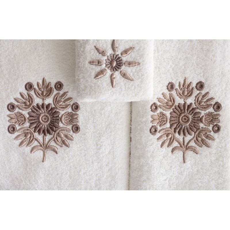 RĘCZNIK KPL.MARIBELLA 3 SZT./30X50/50X100/70X140/ FROTTE HAFT 002 SŁONECZNIK KREM