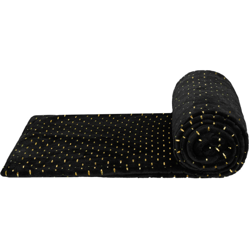 Materjal: 100% polüester Värv: must + kuldne Tekk on ümbritsetud elegantse halli paelaga Mõõdud: Kogupikkus: 220 cm Kogulaius: 200 cm Materjali paksus: 3 mm Lisainformatsioon: Pesta 40 kraadi juures Mitte valgendada Ei trummelkuivatust Mitte triikida Mitte keemiliselt puhastada