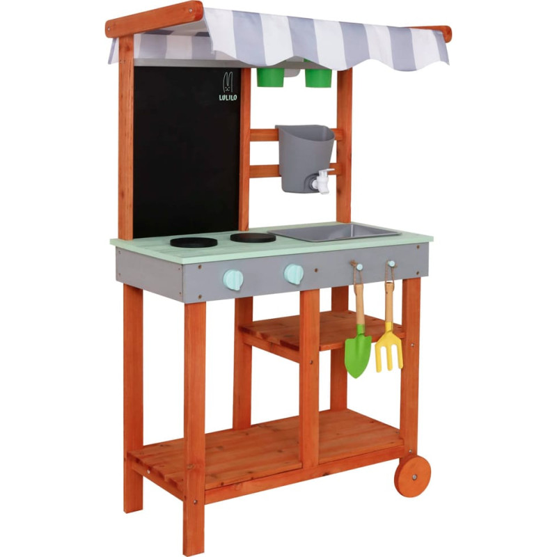 Puidust aiamudaköök ratastel, tarvikute ja kraaniga, välikasutuseks, Lulilo "Sableto", 116 cm
