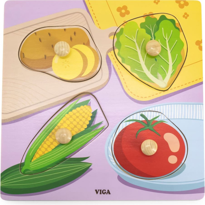 Viga Drewniane Puzzle z Pinezkami Warzywa
