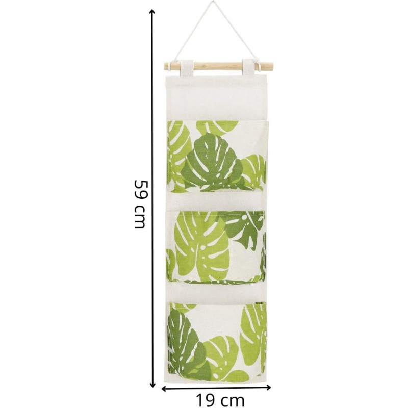 Värv: beež varjund Materjal: polüester, puuvill Korraldajal on 3 mugavat taskut Lihtne riputada seinale või uksele Mõõdud: Pikkus: 59 cm Laius ca: 19 cm Paksus ca: 1,1 mm Tasku mõõdud: 17,5 x 12,5 x 7 cm (laius x pikkus x sügavus) Nööri pikkus ca: 44 cm